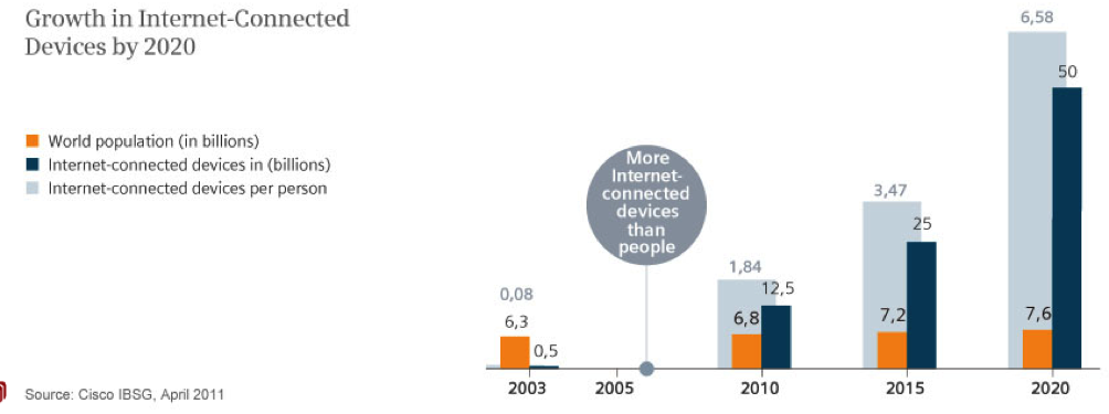 La crescita dopo il 2020 procede a velocità esponenziale, ma le previsioni si fermano qui, anche perché avvicinandosi ai 100 miliardi di oggetti interconnessi la rete comincerà ad approssimare la complessità del cervello umano … e a questo punto la scienza lascia il posto alla fantascienza.